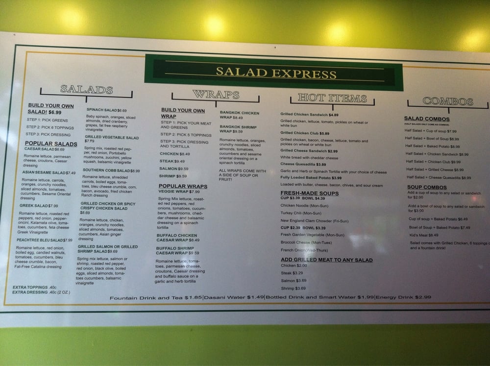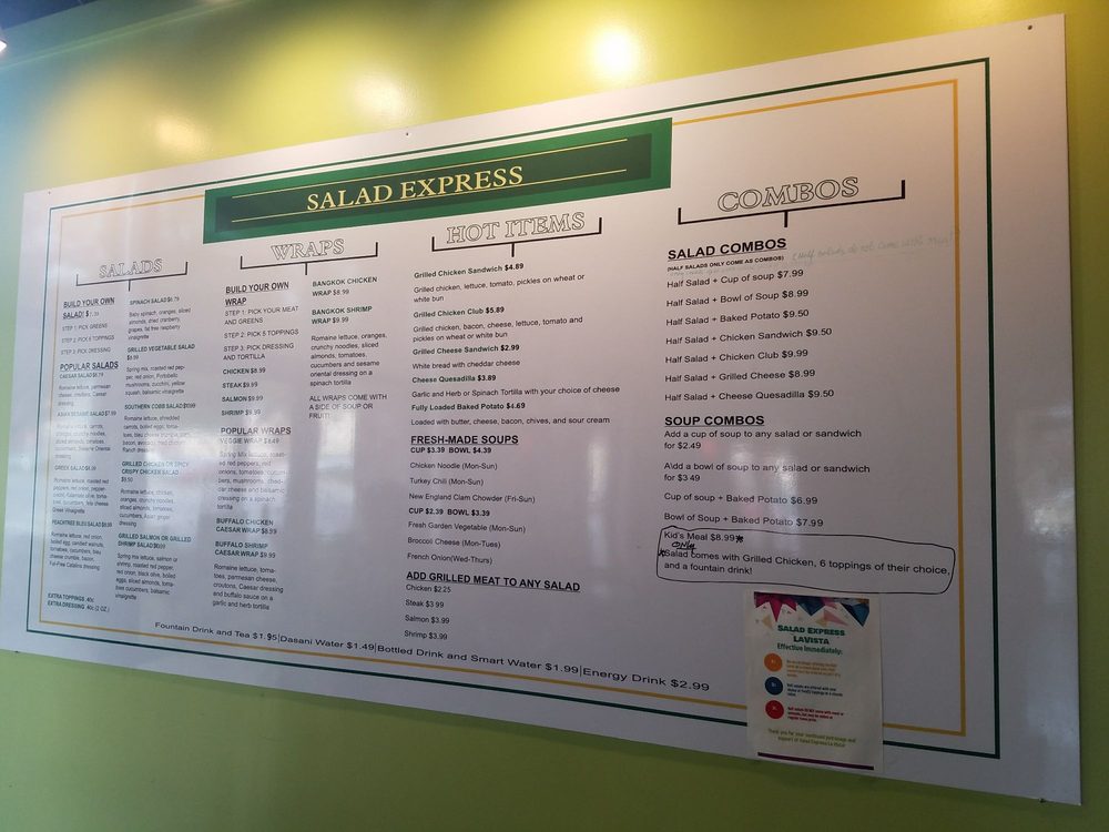 Salad Express is a casual dining spot located in Atlanta that offers a variety of fresh and healthy options. With a focus on salads, wraps, and soups, Salad Express caters to those looking for a quick and convenient meal. Famous for their Caesar Salad and Asian Sesame Salad, customers rave about the delicious and filling portions. The menu also includes a selection of soups like Broccoli Cheese and Vegan French Onion. While some reviews mention small portions of certain ingredients, overall, customers appreciate the quality and taste of the food. With options for delivery, takeout, and outdoor seating, Salad Express provides a convenient and satisfying dining experience for individuals looking for a healthy meal on the go.